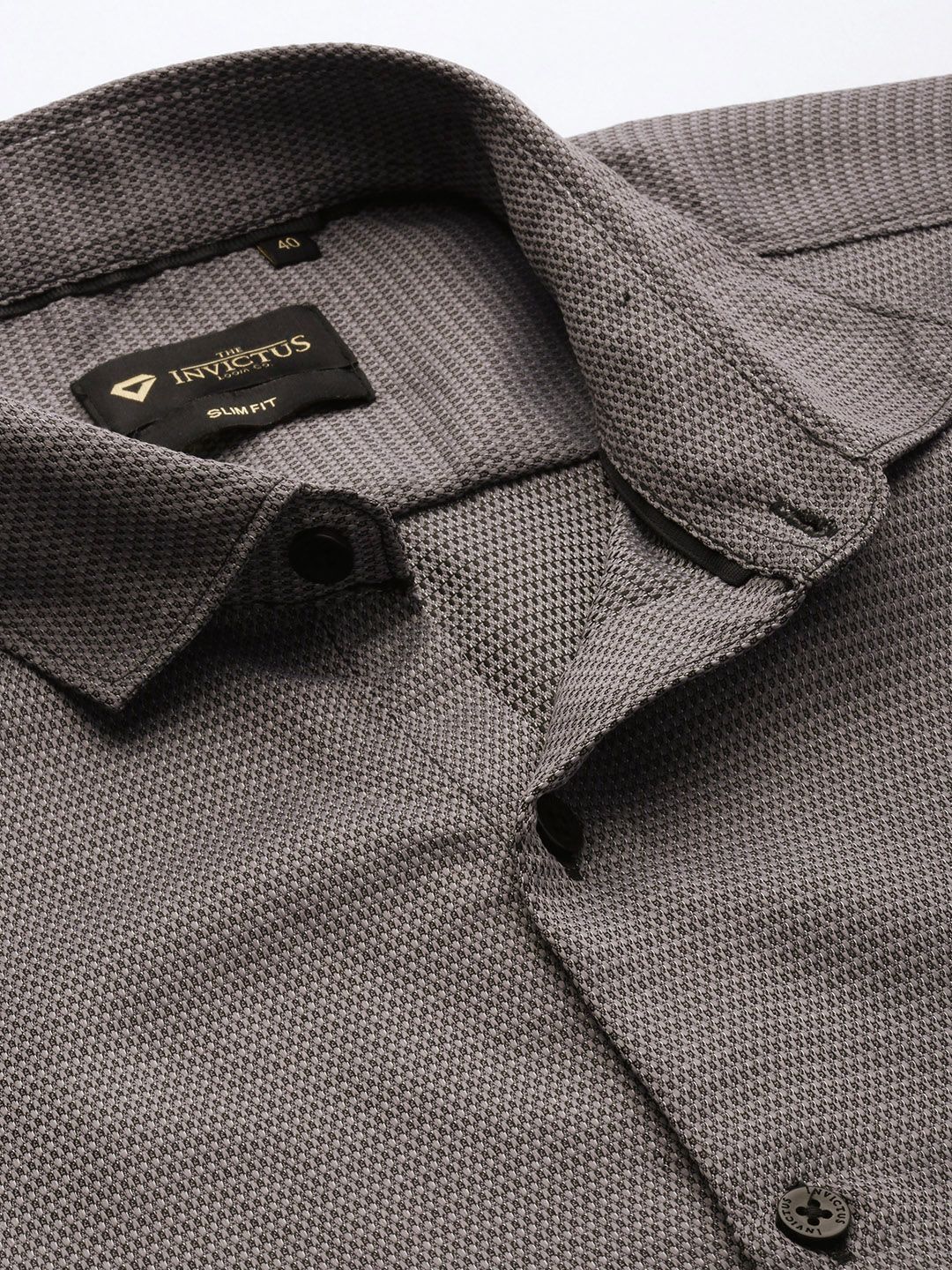 Men Easy Care Grey & Black Self Design Sustainable Formal Shirt