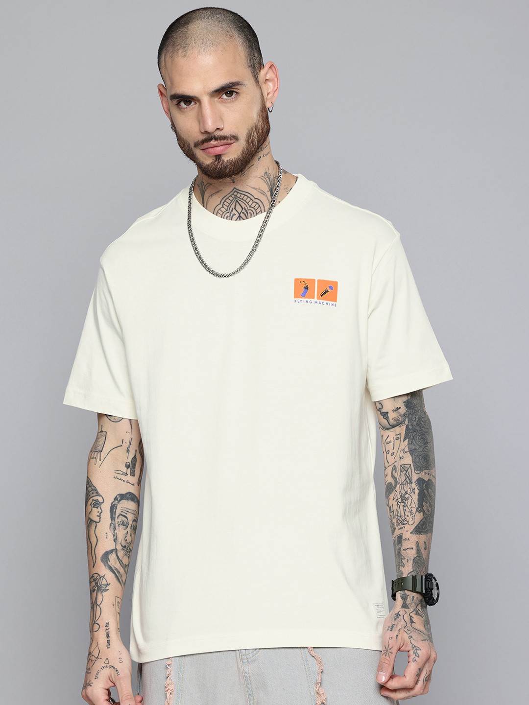 Printed Drop-Shoulder Sleeves Relaxed Fit Pure Cotton T-shirt
