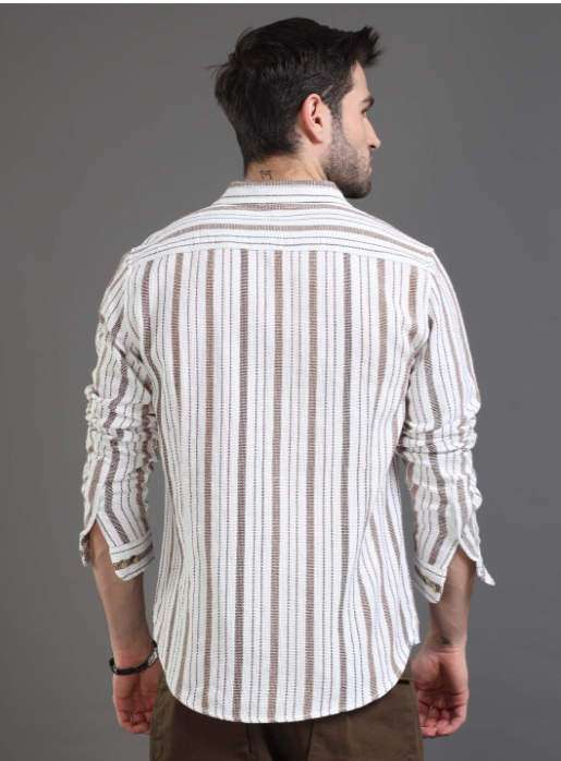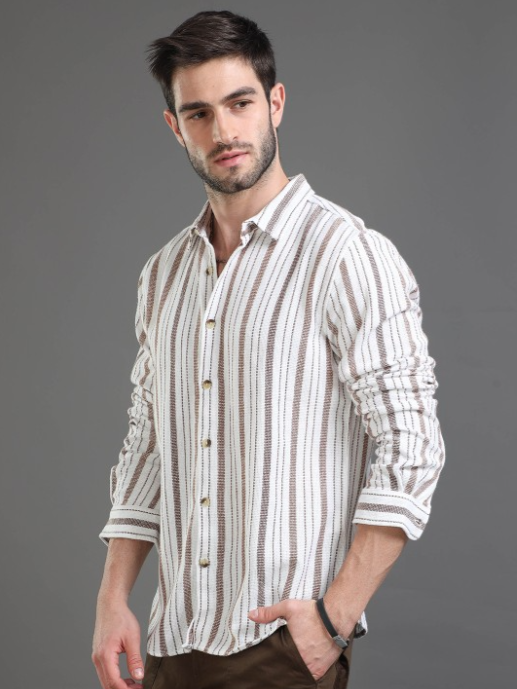 Slim Fit Vertical Striped Cotton Casual Shirt
